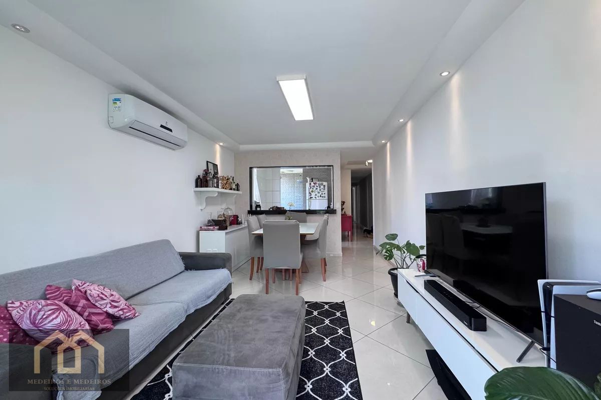 Apartamento no Recreio, 3 quartos, sendo uma suíte e um quarto de empregada transformado em escritório para home office. Banheiro social e de empregada, transformado em dispensa. Cozinha americana integrada com a sala. Varanda gourmet com blindex e persianas.