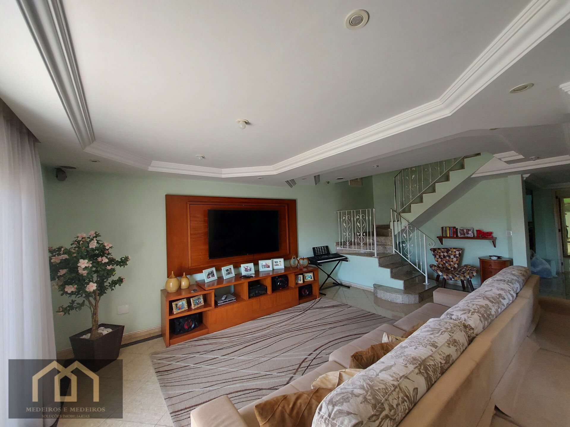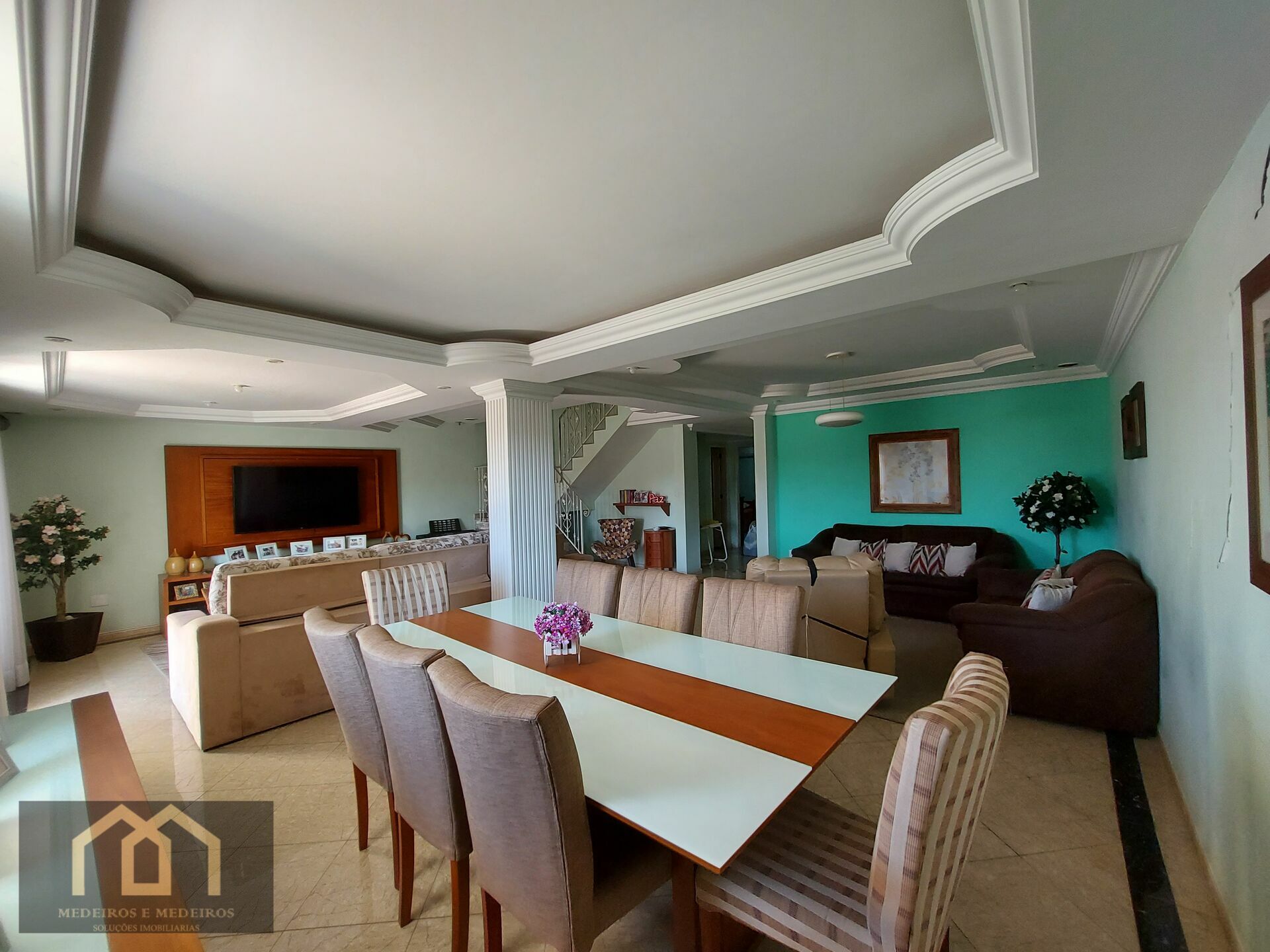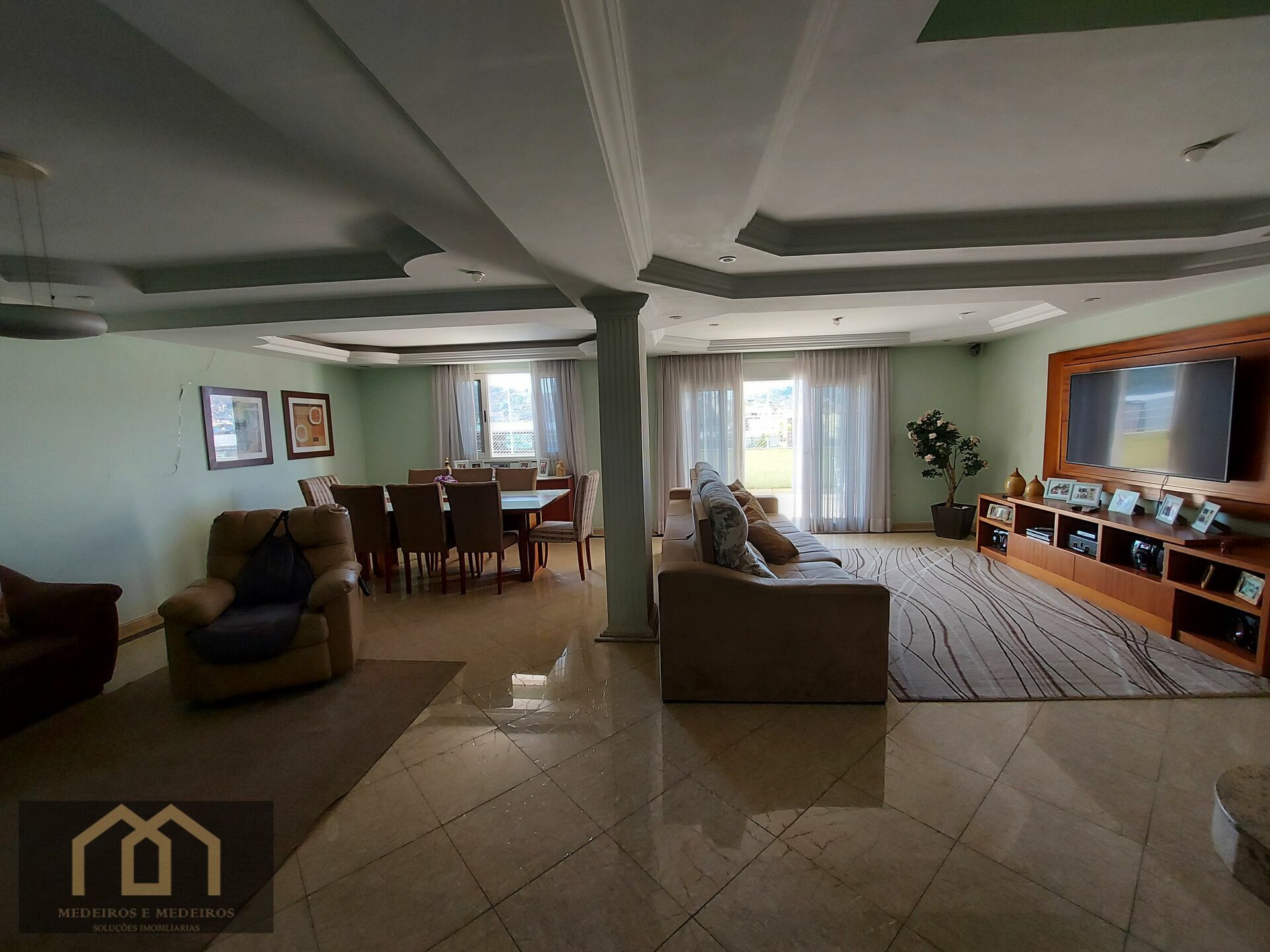 6 Dormitórios, sendo 4 suítes7 Banheiros5 VagasGaragem Coberta1 Escritório1 Copa1 Sala de TV1 Cozinha1 Sala de jantar1 Sala de estar1 Área de serviço1 Dependência p/empregada